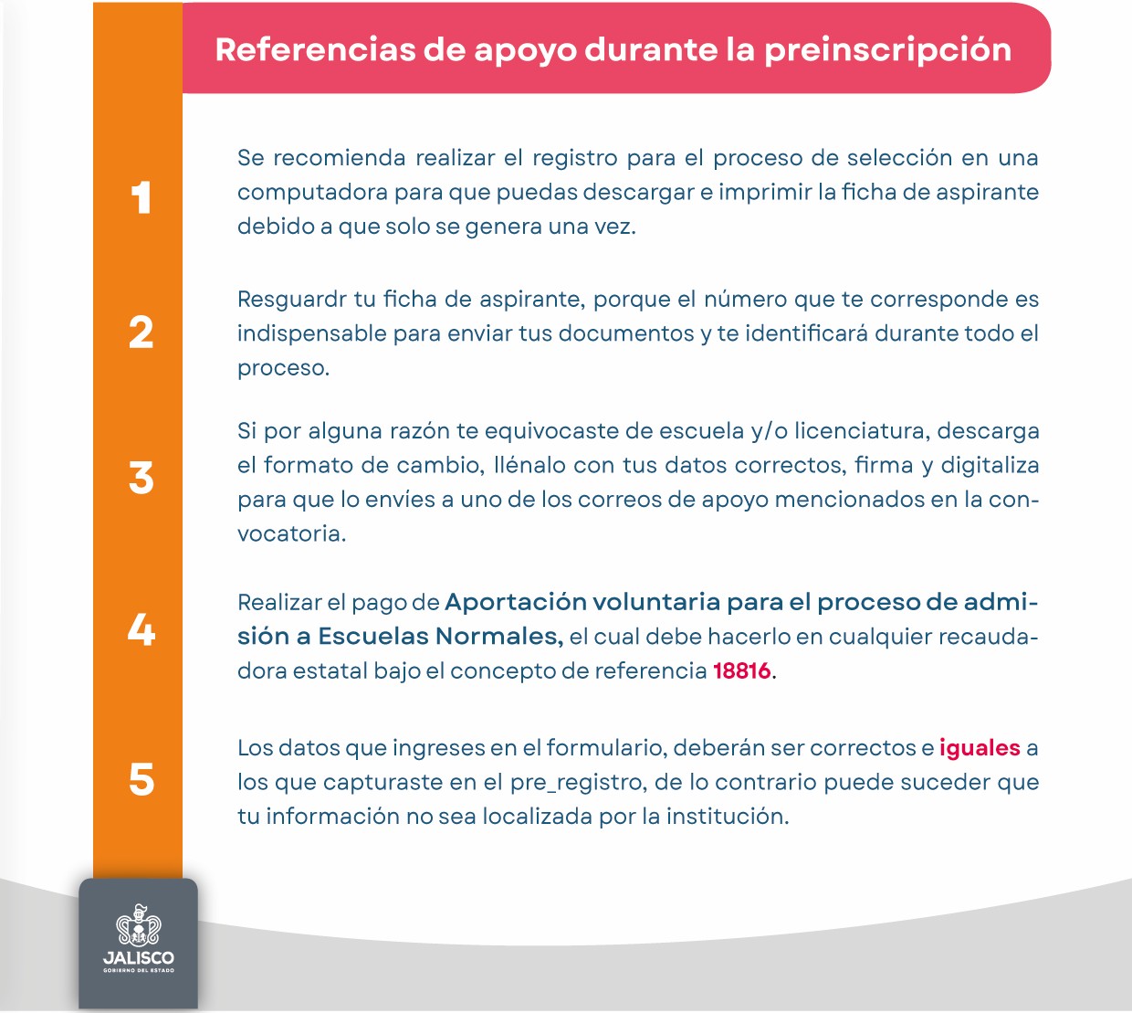 Los datos personales que sean recabados con motivo de la presente convocatoria, ya sea de manera directa o indirecta, serán utilizados única y exclusivamente para los fines y objetivos por los que fueron entregados por su titular a la Secretaría de Educación del Estado de Jalisco.
