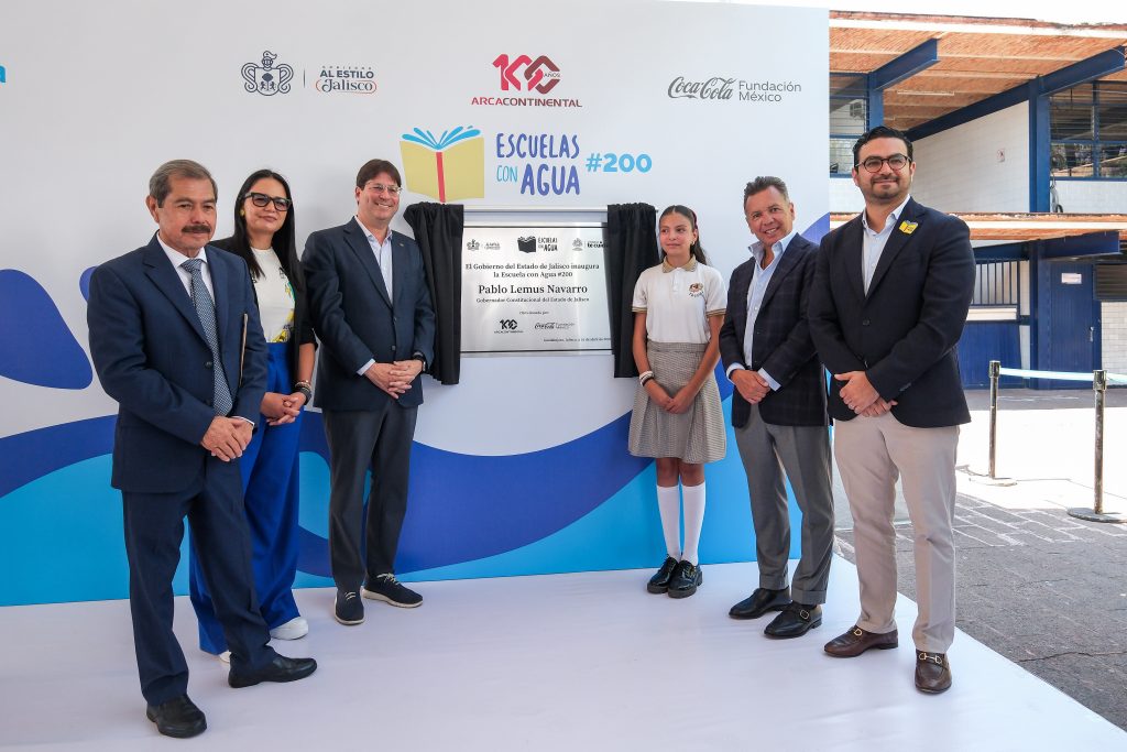 Con el objetivo de fortalecer el trabajo conjunto que garantice el acceso al agua y promueva una cultura de uso responsable, Pablo Lemus Navarro, Gobernador del Estado, celebró la instalación del sistema de captación de agua pluvial número 200, a nivel nacional, del programa “Escuelas con Agua”, impulsado por Fundación Coca-Cola México y Arca Continental.