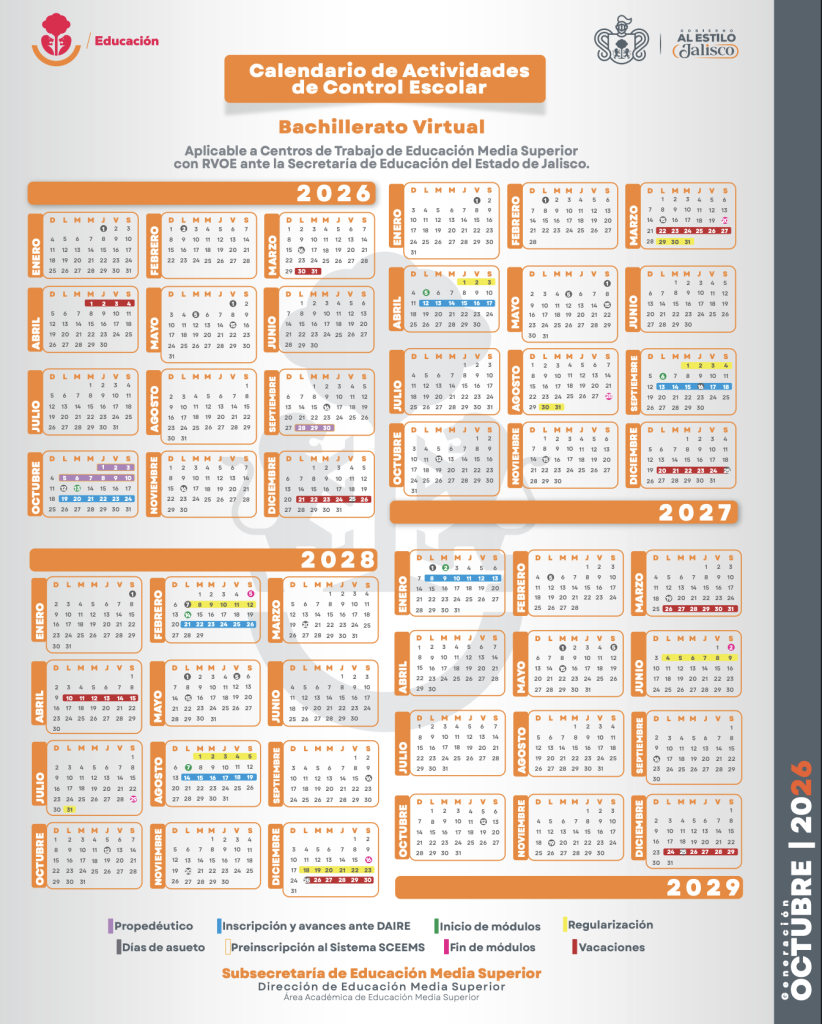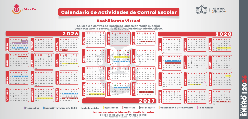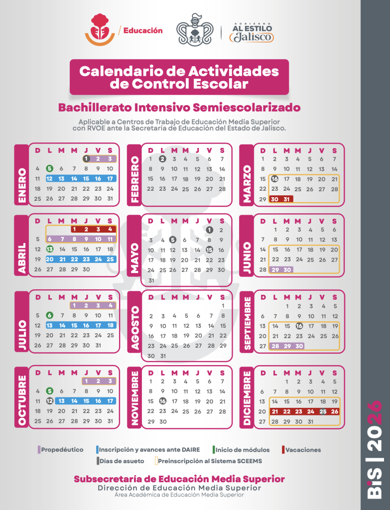 Inicio / Calendarios Escolares Calendarios Escolares Ciclo escolar 2025-2026 CALENDARIO BACHILLERATO GENERAL Y TECNOLOGICO PLAN SEMESTRAL 2025B-2026A CALENDARIO BACHILLERATO GENERAL Y TECNOLOGICO PLAN CUATRIMESTRAL 2026A-2026C Año escolar 2026 del Bachillerato Intensivo Semiescolarizado y Bachillerato Virtual Ciclo escolar 2024-2025 CALENDARIO BACHILLERATO VIRTUAL GENERACION ENERO 2025 CALENDARIO BACHILLERATO VIRTUAL GENERACION ABRIL 2025 CALENDARIO BACHILLERATO INTENSIVO SEMIESCOLARIZADO PERIODO 2025 CALENDARIO BACHILLERATO VIRTUAL GENERACION JULIO 2025 CALENDARIO BACHILLERATO VIRTUAL GENERACION OCTUBRE 2025